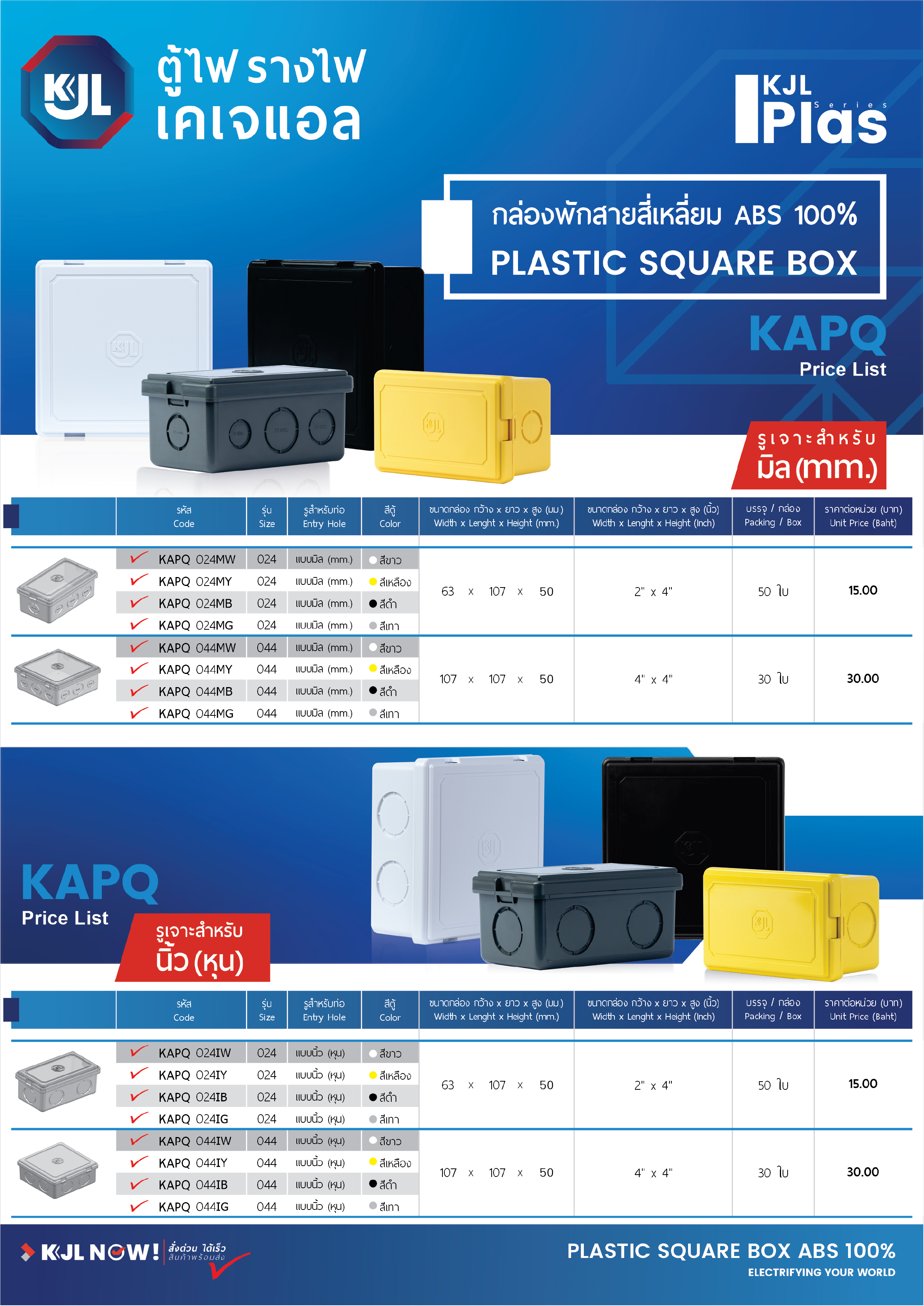 KJL | Plastic Square Box กล่องพักสายสี่เหลี่ยม ABS 100%