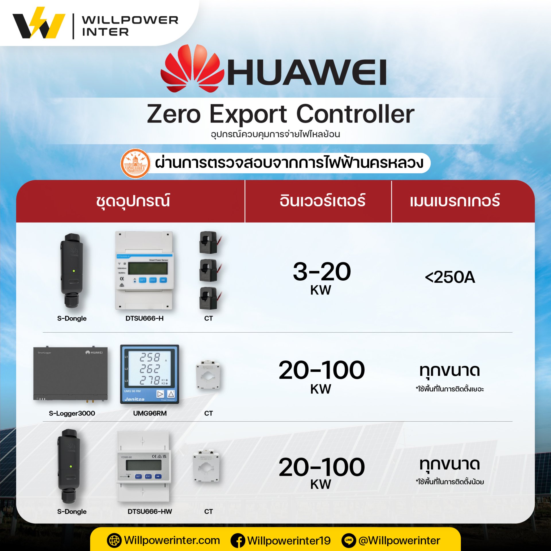 Huawei | Zero Export Controller อุปกรณ์ป้องกันไฟฟ้าไหลย้อน
