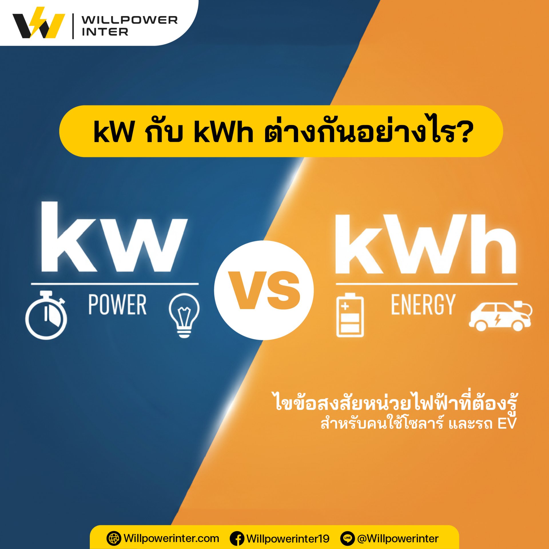 เคยสงสัยไหมครับว่าเวลาดูบิลค่าไฟ สเปคแผงโซลาร์เซลล์ หรือรายละเอียดแบตเตอรี่รถยนต์ไฟฟ้า ทำไมถึงมีทั้งหน่วย kW และ kWh? สองคำนี้ดูคล้ายกันจนหลายคนสับสน แต่ความจริงแล้วมันคือคนละเรื่องกันเลย บทความนี้จะอธิบายความแตกต่างที่สำคัญนี้ให้เข้าใจง่ายและชัดเจนที่สุด