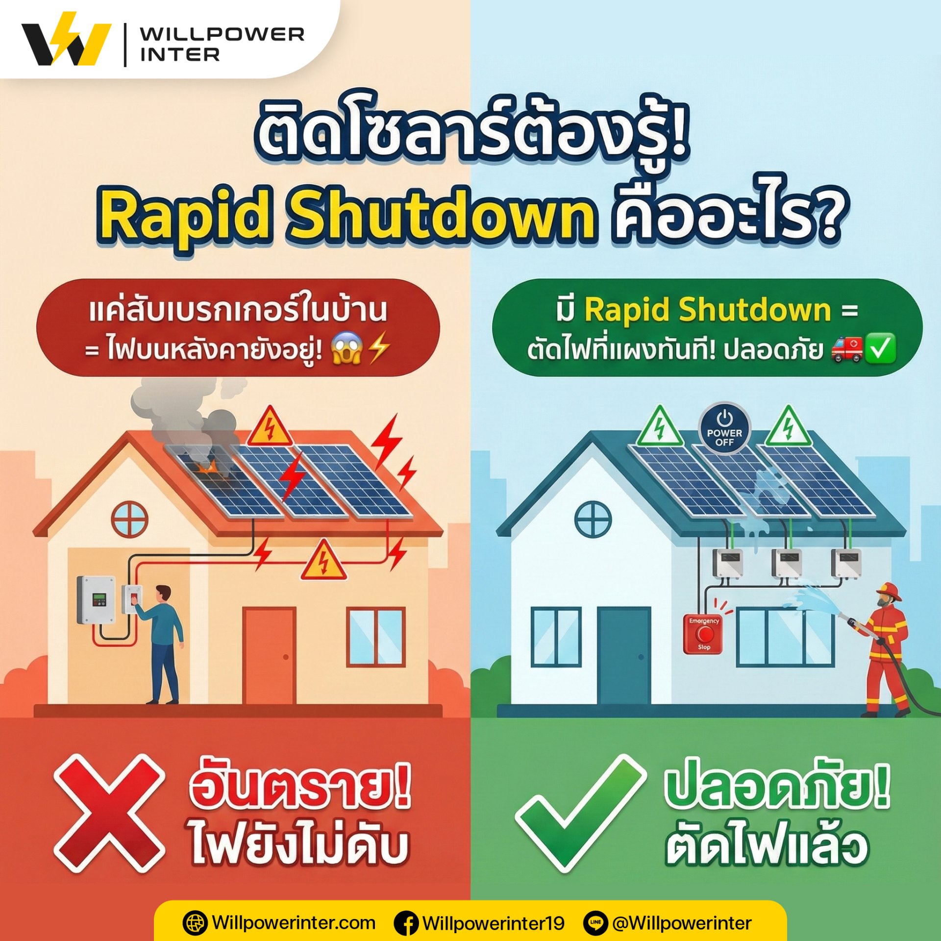 สำหรับผู้ที่กำลังวางแผนติดตั้งระบบโซล่าเซลล์ ควรพิจารณาติดตั้ง Rapid Shutdown เพื่อเพิ่มความปลอดภัยให้กับระบบและเป็นไปตามมาตรฐานความปลอดภัย