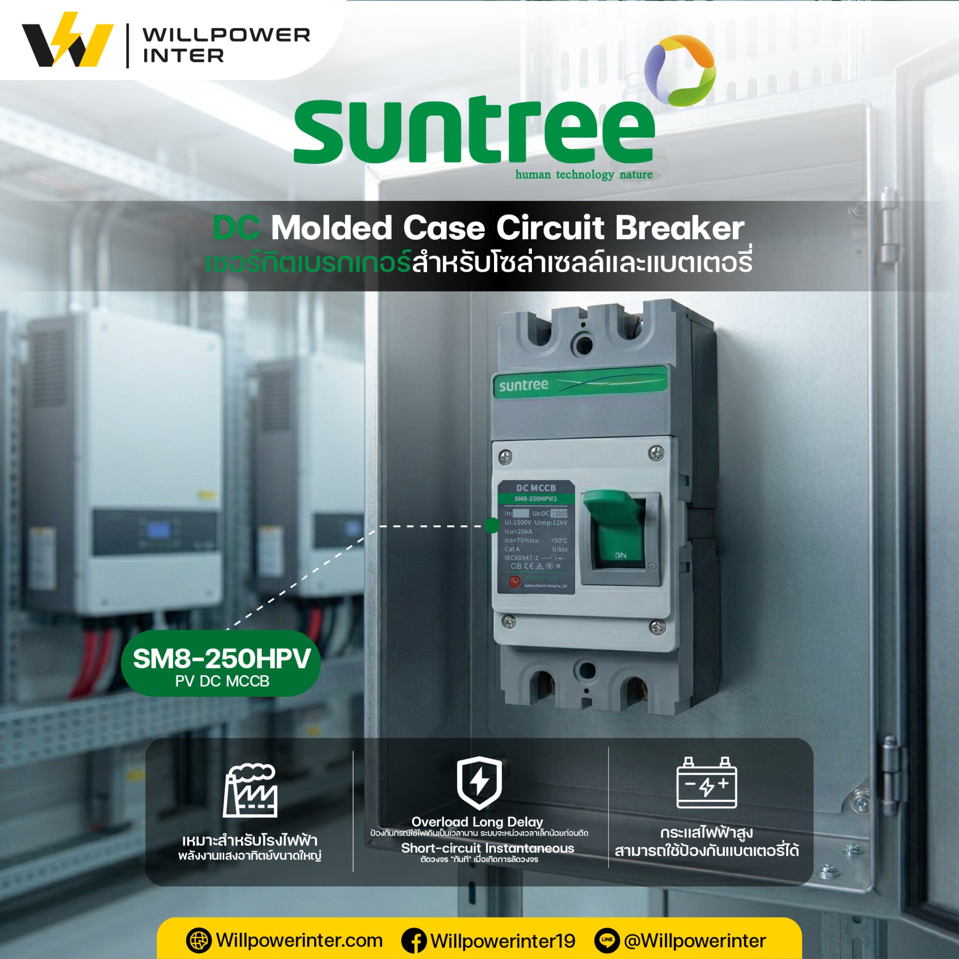 ในยุคที่ระบบ Energy Storage และ Solar Cell กำลังมาแรง ความปลอดภัยคือหัวใจสำคัญที่สุด อุปกรณ์ตัดตอนไฟฟ้าอย่าง DC MCCB (Molded Case Circuit Breaker) จึงเป็นด่านหน้าในการปกป้องทรัพย์สินของคุณ วันนี้เราจะพามาเจาะลึก Suntree รุ่น SM8-250HPV/2P เบรกเกอร์ DC สเปคเทพที่ออกแบบมาเพื่อจัดการกับกระแสไฟฟ้าแรงดันสูงโดยเฉพาะ
